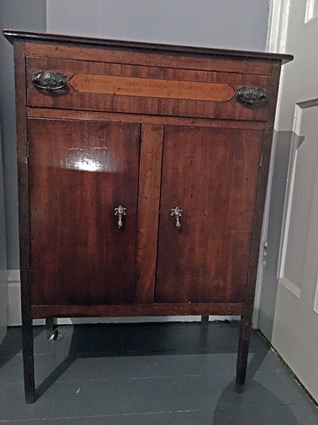 Jennifer Gater from Nantwich, Cheshire, sent me this photo of her charming find, bought at a junk shop in Crewe. The price? £8. I hope she will continue to cherish it, now that she knows a bit more about what this curious drawfront originally was. There is good mahogany in the doors, the like of which you cannot buy today, and according to Jennifer the side panels are attractive too. We are accustomed to seeing pianos converted into desks, or side tables, but this may be something unique.